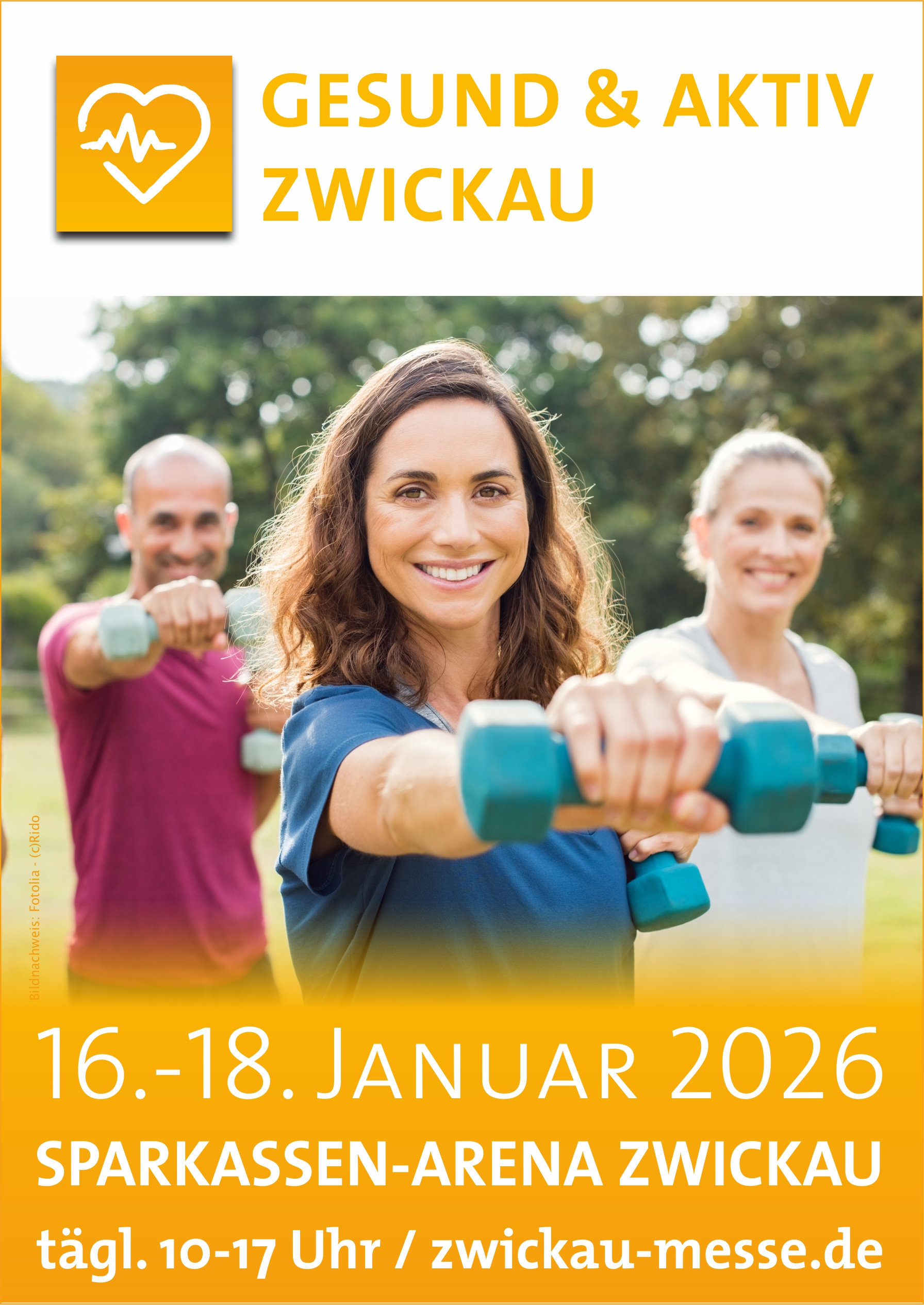Gesundheit ist eines der wichtigsten Güter des Menschen, weshalb die Nachfrage nach Produkten & Dienstleistungen für einen bewussten Lebensstil stetig wächst. Vom 16.-18.01.2026 bietet die Messe GESUND & AKTIV ZWICKAU in der Sparkassen-Arena Zwickau eine lebendige Plattform zu den Themen Gesundheit, Bewegung, Ernährung & Wohlbefinden.